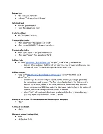 - A few common tags include <p></p> (paragraph), <a></a> (anchor, which defines linked text), and <font></font> (font, which can help define various attributes of the text, like size and color).