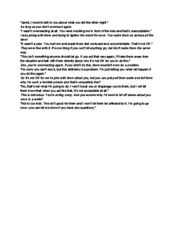 - For example, you may be able to tolerate them dominating conversations, but you are not able to accept when they insult you.
