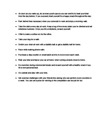 - Do quick exercises, like crunches, jumping jacks, or lunges, during commercial breaks as you watch TV.