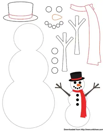 2Cut out the body of the snowman. Draw the outline of a snowman onto the sheet of paper. Make the snowman whatever shape you like -- two snowballs high, three snowballs high, fat, skinny -- it's up to you.
