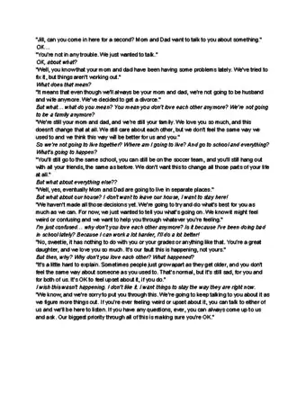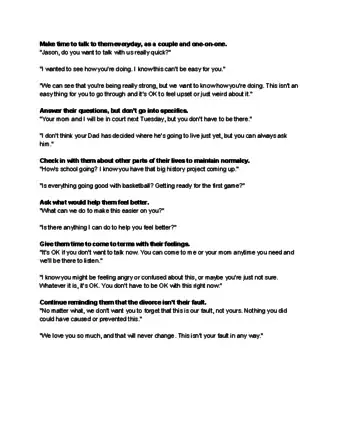 - Try checking in with them by saying, “How have you been since we last talked about the divorce? Is there anything you're worried or curious about?”