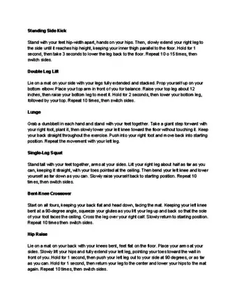 5Do sidestepping. This exercise helps target the outside of your hips specifically. It's great for toning and strengthening the outside of your thighs.