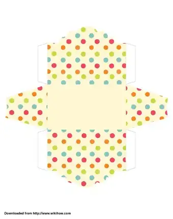 10Glue the sides in their upright position to the bottom of the box. Everything that rests on the bottom of the box – in the triangles between the lines of the original X – should be glued down. This will form a square bottom and 4 upright sides. In other words, half of a gift box.