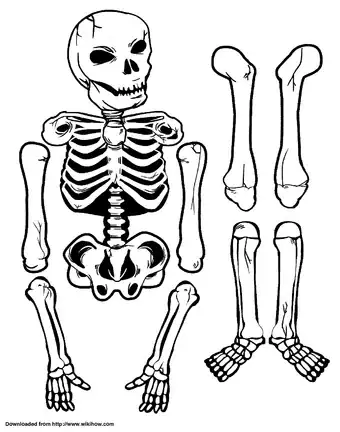 3Divide the skeleton into parts. Separate out the parts of the skeleton that will make up your paper skeleton. Each part will be made out of one piece of paper, Cardstock, or paper plate.
