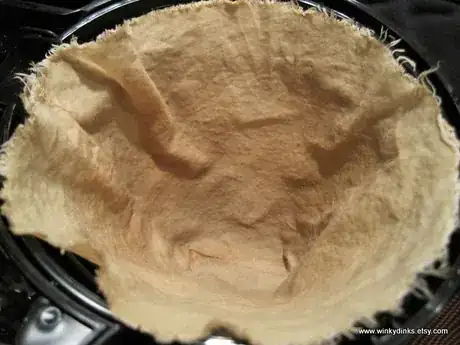 5Use the finished side IN so that the coffee grounds don't get stuck in the seam. Just rinse out, and lay out to dry. It dries very quickly and is ready to use again the next day, however having two is probably better so you can rotate them. Since it's cotton, you can also machine wash and dry it if you want to.[2]