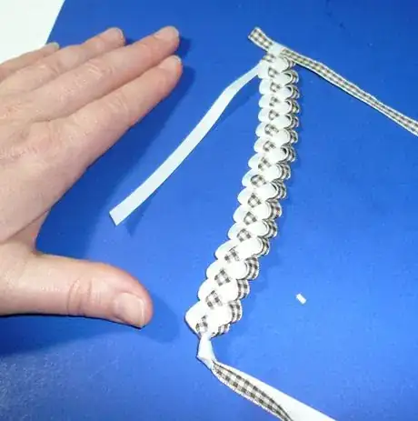 1Cut two lengths of ribbon approximately 4 times as long as you want your finished bookmark to be. (Around one yard or meter in length works well.) You may use any color(s) you wish, but contrasting colors work best the first time making one.