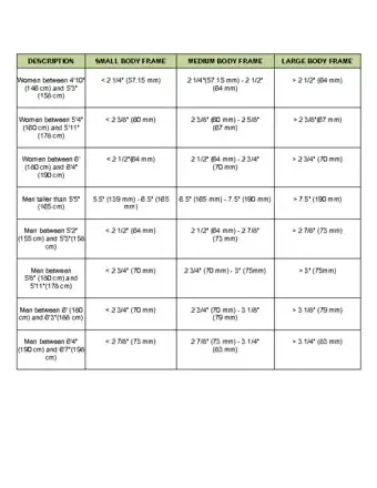 There are 3 frame sizes, small, medium, and large, and they usually depend on a few things including your gender and your body measurements. To measure your frame size with your wrist, wrap a tape measure snugly around your wrist and write down the measurement. If you’d rather measure your elbow to figure out your frame size, bend your arm at a 90-degree angle so your forearm is perpendicular to the ground. Then, use a ruler to measure the width of your elbow. Once you’ve taken your measurement, look at the chart below to figure out your frame size. To learn how to use an online frame size calculator, read on!