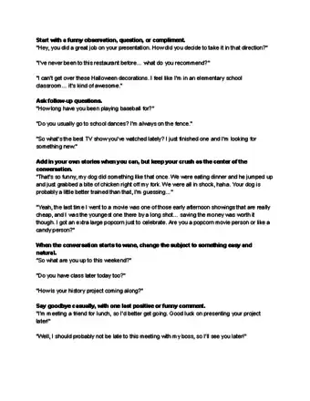 - Distract yourself from your nerves by listening to what your crush is talking about and coming up with new questions to ask them.