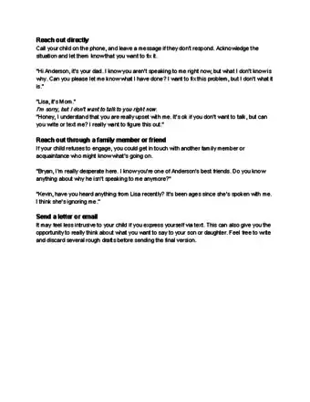 - If you do not hear a response from your son or daughter, you could get in touch with another family member or mutual friend who might know what’s going on. You could say, “Jack, have you talked to your sister lately? She’s not speaking to me, and I can’t find out what the problem is. Do you know what’s going on?”