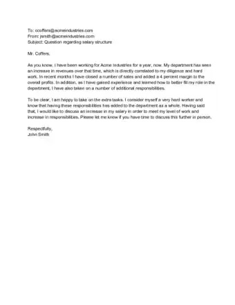You may say something like, “Given my performance at the company and the role I’ve been fulfilling, I’d like to discuss a potential raise at my next performance review.”