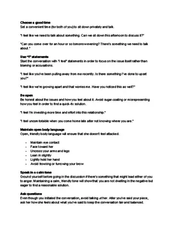 2Come up with a solution that works for both of you. Be prepared to negotiate and discuss the problem to come up with something that makes you both happy. Try to be patient and understanding, and hear her feedback when she has concerns instead of arguing or lashing out.[8]