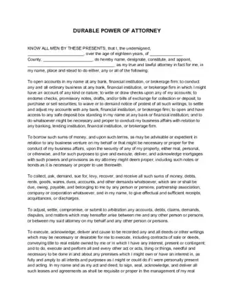 - A "durable power of attorney" goes into effect either immediately or from a specified date onward. The agent does not need to prove your incapacity in order to act on your behalf.