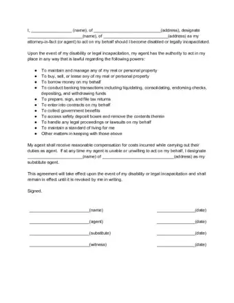 - The form should stipulate exactly what authority the principal is handing over to the agent. For example, the principal could hand over only financial authority to the agent (the power to control the principal's bank accounts) or health care decision making authority (so the agent could make health care decisions on behalf of the principal).