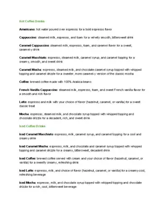 Community AnswerThis will depend on each individual location, but usually there is a menu with the different coffee types available. -