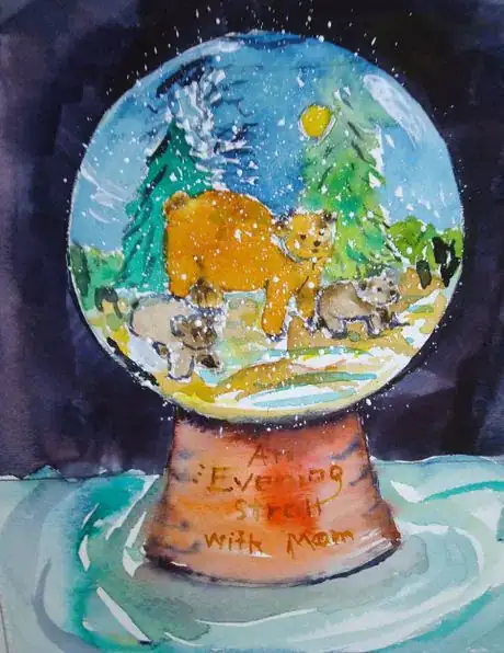 Snow globes are magical. Just shake them and the scene captured within is enhanced by falling snow. The fun of doing them in watercolor is working within a four to five inch, round, format, to create a tiny world. Practically anything goes when it comes to content for the globes; animals, people engaged in outdoor activities, children, scenery, holiday fun, sports, etc. The list is endless. This lesson shows how to select a subject for inside the globe and how to paint it. It tells how to make the globe appear to be made of shiny, reflective glass. For the final touch, it covers how to capture the globe as though it has just been shaken, and snow is falling inside it.