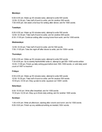 - Try to overdo it the first week. Try to get 20,000 words by the seventh day. No doubt, it will be nearly impossible to do it, but even if you do not make 20,000, you will be a good bit ahead in case you miss a day of writing. Try to hit 35,000 by the next week, 45k the following week, and 50k in the next few days. See the pattern? You have a smaller and smaller goal every week. This is to accommodate for writer's block, which you may get from time to time. However, don't overwhelm yourself so much that you experience burnout. This is optional, but it does help you stay positive and encourages you to keep going.