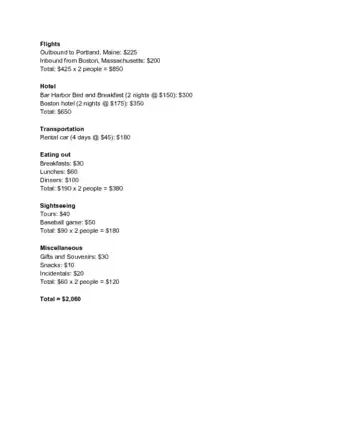 1Assess your costs. Are you going to be bathing in champagne in the claw-foot tubs of a five-star hotel? Or are you going to be roughing it in hostels with a stub of bread in your pocket? A large part of how much a vacation costs is what you decide to spend. Take an hour or two to figure out how much your trip would cost you and your companions. This should include airfare or gasoline costs.[5]