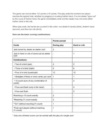 - The first to accumulate 121 points wins. This often occurs in the middle of a deal; the game then ends immediately. Two trips around the board (with your pegs) is equivalent to this. If you are playing a short game, one trip signifies the end, with a player winning at 61.