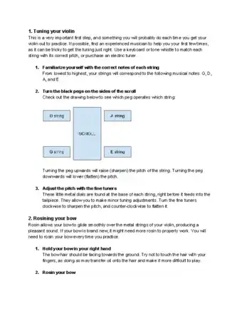 Community AnswerThis is a more advanced technique that your teacher or somebody should show you in person. To tune a violin you can use either the pegs or fine tuners. Lots of beginners have fine tuners on their violins. As you buy more expensive violins, many will only come with one fine tuner. -