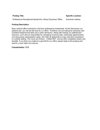 - If you are offering a job, include the amount of time the job is expected to take as well as compensation. Discuss qualifications needed, as well as what applicants can expect if they get hired. You can typically leave compensation as DOE (Depending on Experience).