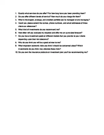 4Ask questions about your future communication. At the end of your meeting, your financial planner will give you a detailed roadmap for achieving your financial goals. However, things change. You’ll want to know how your financial planner will communicate with you. Ask the following: