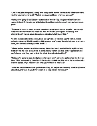 - Let both boys and girls weigh in about how gender is portrayed in a given text or work. There isn’t a need to have only girls discuss the representation of women, for example.