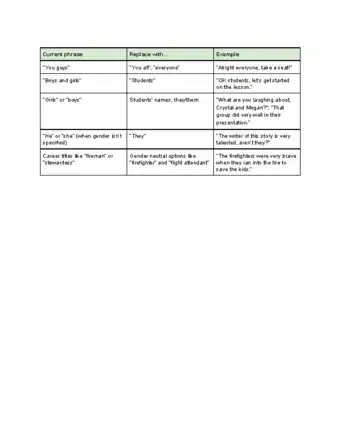 2Avoid asking students to speak on behalf of their gender. Ask students only to speak for themselves rather than being a spokesperson for a larger group. Avoid asking questions with leading intros, such as, “How do you think most boys would feel about this story?”[10]