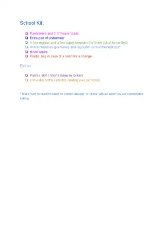 Getting your first period can be nerve-wracking, especially if you're caught off-guard at school or work. Putting together a simple kit with the essentials can help you feel more prepared and less anxious about it. Just stash your kit somewhere convenient, like your backpack or locker, so you can grab it when you need it! If you have any questions about your period, talk to an adult who you trust.