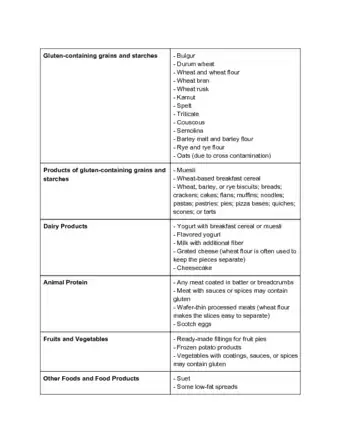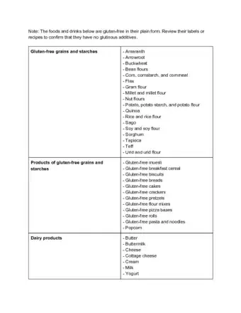- Replace gluten-containing foods such as wheat, barley, rye, semolina, and spelt with ingredients that do not contain gluten, such as arrowroot, peanut flour, quinoa, rice flour, and soy flour. Try these tips from the National Institute of Health to learn what you can and can't eat: https://www.niddk.nih.gov/health-information/digestive-diseases/celiac-disease/eating-diet-nutrition