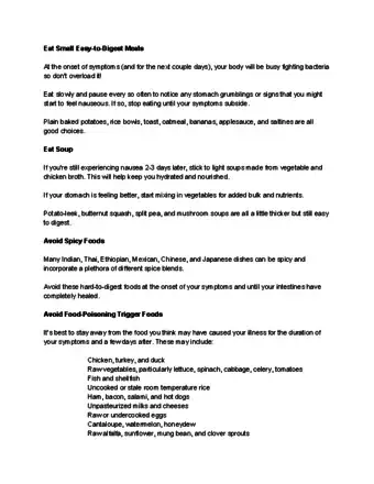 5Avoid foods that can trigger nausea or vomiting. Chances are these won't sound appealing if you already have food poisoning, but take care to avoid spicy or fatty foods which can be difficult for you to digest.[8]