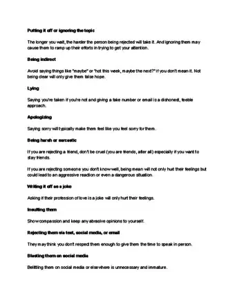 7Stay strong and don't give in. The worst thing you can do is to retract your rejection because you feel sorry for the person or don't want to hurt him or her. You wouldn’t have started the process if you weren’t sure you wanted to finish it.