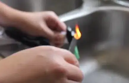 1Burn the tag. Using a lighter, burn the dome like portion of the tag. After burning it for few seconds it will, most likely, catch fire as its plastic.