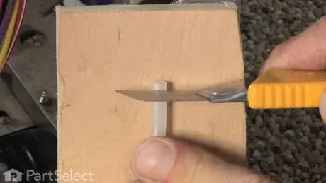 3Clean the tubing when it has been removed. Clean up the rough edges of this tubing by cutting a bit of it off. To cut it, use a block of wood and putty knife on the floor. (Try to trim it and avoid cutting too much off.) Set this tubing aside.