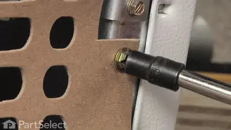 2Remove the cardboard cover on the back of the fridge. Locate the screws in the upper right hand corner of the refrigerator and use a nut-driver to remove them.