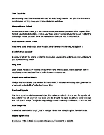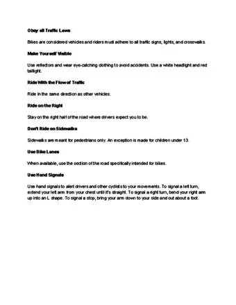 Safety Information, Rules of the Road, and Things to Remember when Biking