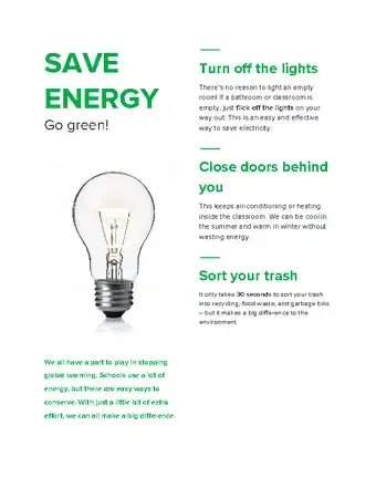 - For example, you might hang up signs next to light switches around the school with reminders, like “Remember to turn off the lights when you leave!”