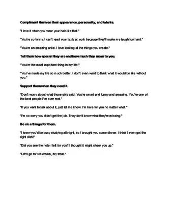 • If your partner is having a rough day, ask them to talk about it. Listen to their words carefully, and offer supportive words such as "Babe, you're wonderful. Don't worry about what your boss thinks."