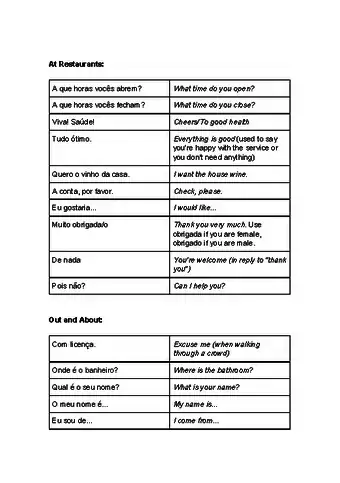 • Where are you from?: De onde o/a senhor/a é? (Djee own-djah oh/ah sen-your/ah eh)