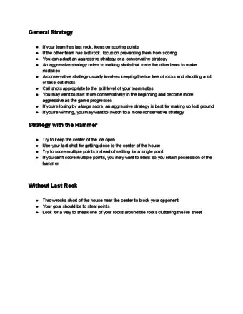 Community AnswerYou have to get rocks into the house. The rocks closest to the button (the middle dot), count for points. For example, if there are two red rocks closest to the button, the red team gets two points for that end. If there's a rock closer to the button than one of the two, only one counts for points. -
