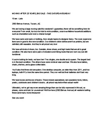6Proofread your description to ensure that there aren’t any errors. After you’ve finished writing your description, complete with details and stories, read over it slowly and carefully. Errors can drive away potential buyers because they may make you look careless, or make your description unclear. Carefully proofread your listing to make it as professional as possible.