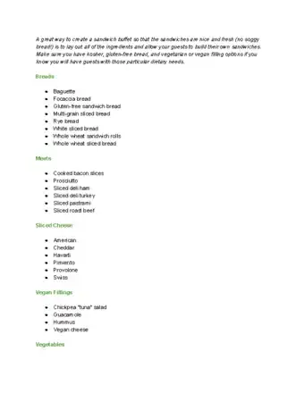 - You can send out a list of ideas for dishes and ask for feedback a week or two before the buffet.