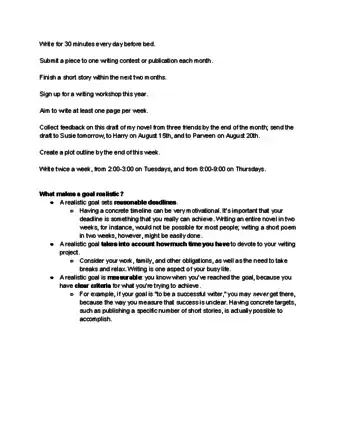 - Goals could include tasks like writing an outline and completing a first draft.