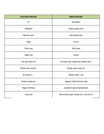 Practice basic traveler phrases. If you plan to travel in India or an area where Hindi is spoken, you may want to brush up on several traveler phrases to help you speak to locals during your trip. You should practice these phrases with a Hindi fluent friend or a friend who is also learning Hindi so you can master the pronunciation of these phrases and terms.[14]