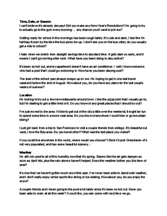 - If you’re coming up on a holiday, you could say something like "I can't wait for Halloween next week. My friend is having a house party and I've got a great werewolf costume planned. Are you doing anything fun?"