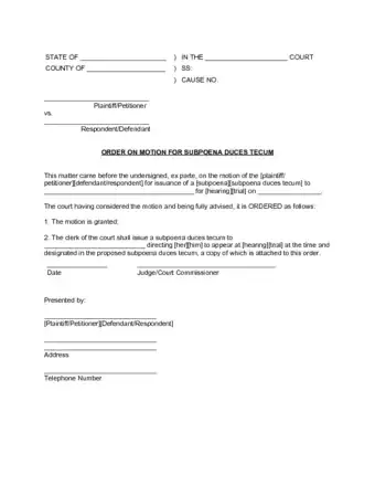 7Prepare any other required documents. In many counties, non-attorneys requesting a subpoena must file a request with the court and wait for the judge to sign an order before the clerk will sign and seal a subpoena duces tecum. Check with the clerk to determine if you need to file a request with the court and to get the correct form.