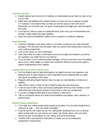 Succeeding in a college or high school English course can be a challenge. This is especially true if English is not your best subject. However, there are some easy, specific things you can do to improve your chances of succeeding. Start off on the right foot, and then develop your readings and writing skills to achieve your goals. If you struggle, or if you want to ensure that you will succeed in your English class, reach out for extra help!