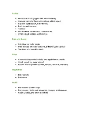 Snack, Meal, and Exercise Ideas