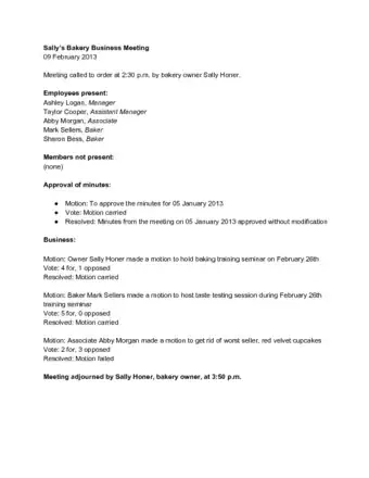 - Be sure to include any references to Robert's Rules of Order, the organization bylaws, or company protocol.