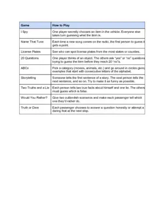 - Play "Scavenger hunt": Have someone draw up a list of items that have to be spotted during the set time. The first to check off all the items on the list wins.