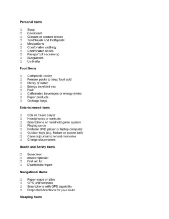 - Throw in some activity gear, like a soccer ball to kick at road stops, a Frisbee to throw, and a pack of cards for a game or two at a cafe.